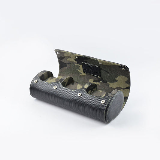 Black Camo Saffiano Leather Watch Roll