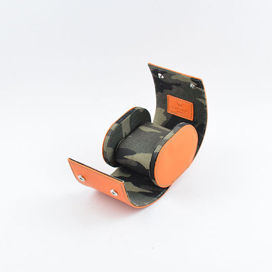 Orange Camo Saffiano Leather Watch Roll