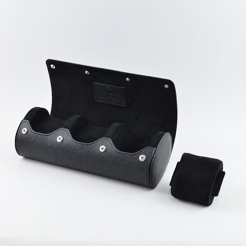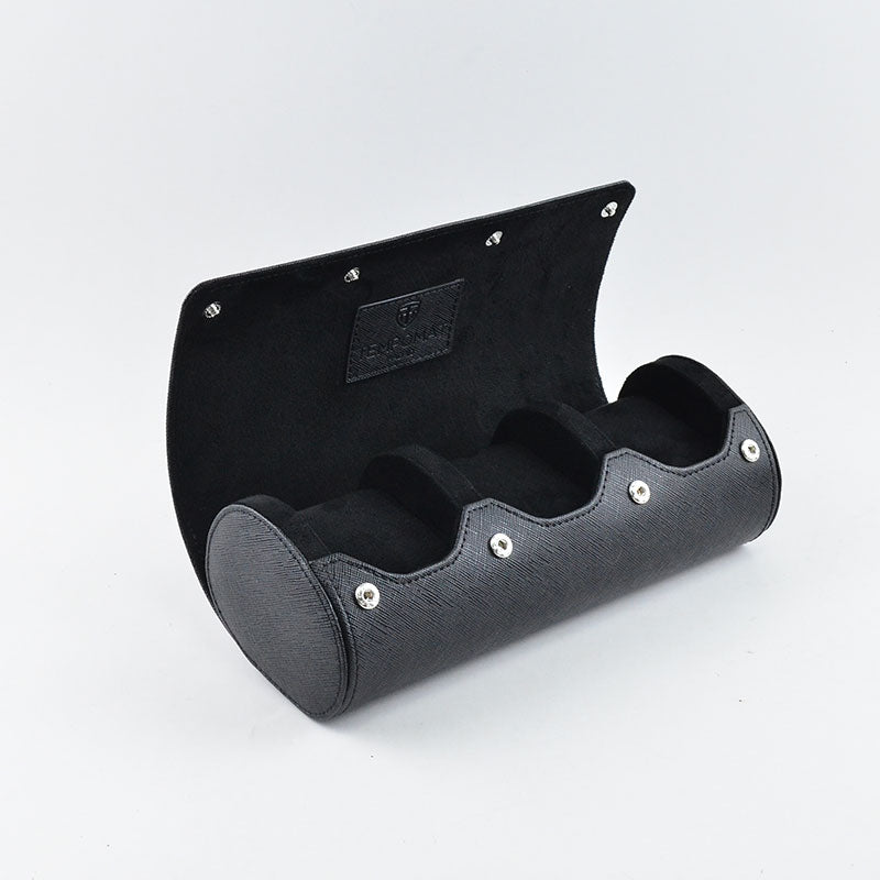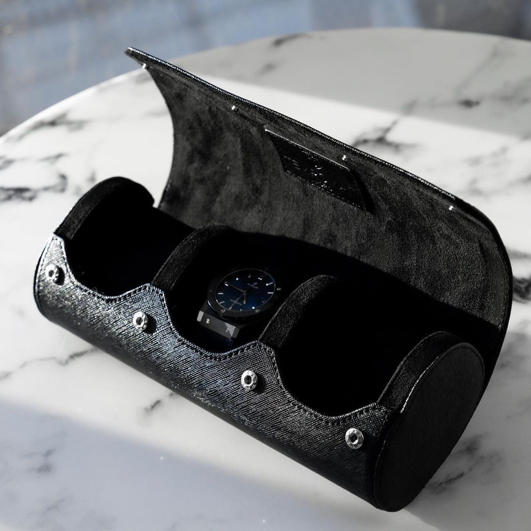 Full Black Saffiano Leather Watch Roll